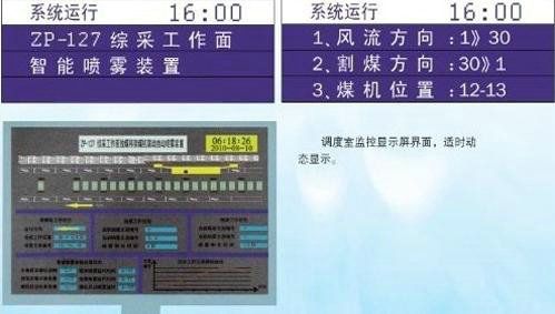 例如綜放工作面智能定位噴霧降塵系統(tǒng)工作面監(jiān)控信息包括:采煤機(jī)當(dāng)前的所在位置、允許方向、架間噴霧點(diǎn)道數(shù)、割煤道數(shù)、當(dāng)前移架和放煤及噴霧道數(shù)、生產(chǎn)允許圖標(biāo)及近3個(gè)月內(nèi)的生產(chǎn)運(yùn)行記錄等。